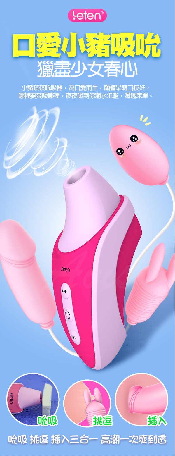 .主商品:LETEN 小豬琪琪 吸吮+跳蛋+震動棒 一機多用 口交吸吮按摩器 女用自慰器