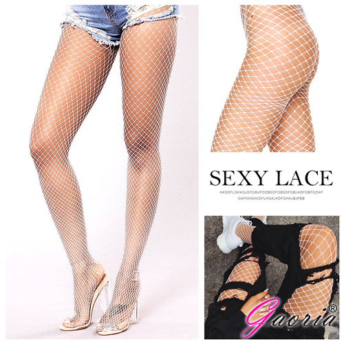 【Gaoria】網眼襪 鏤空連褲襪 牛仔褲打底襪 漁網襪 白 中大網