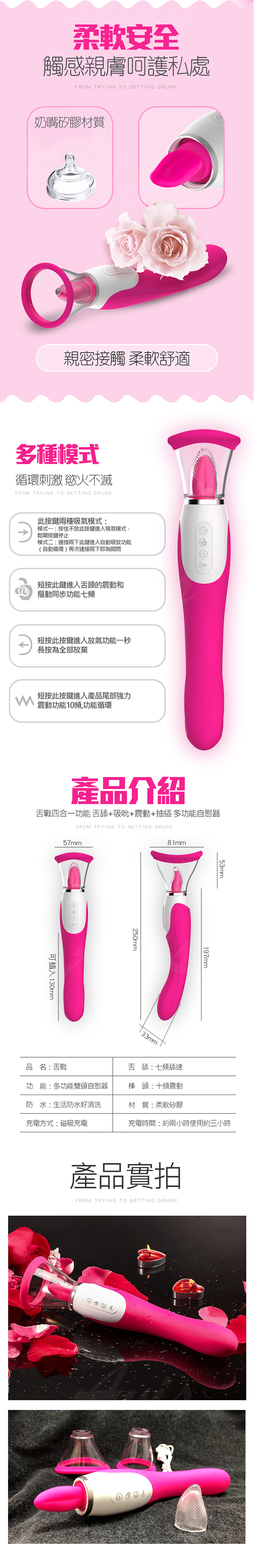 .主商品:舌戰 舌舔+吸吮+震動+抽插 四合一 多功能自慰 按摩器