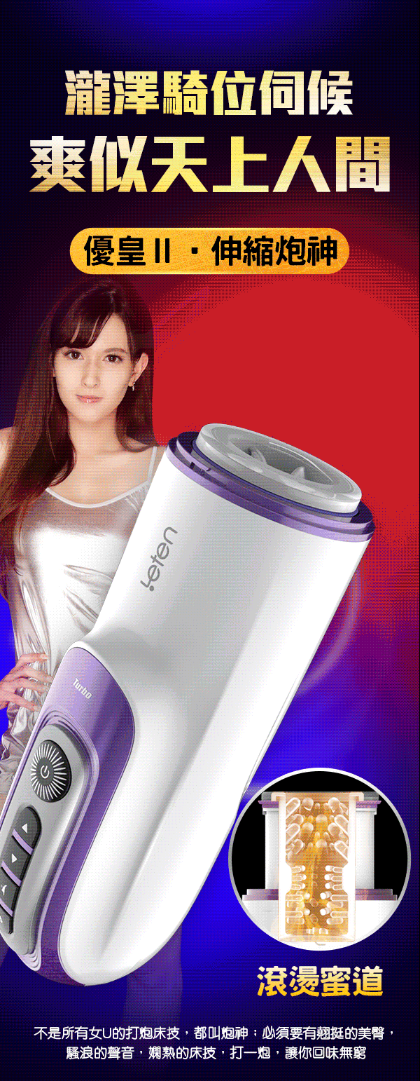 .主商品: LETEN 優皇Ⅱ 2代 伸縮炮神 水咲蘿拉(瀧澤蘿拉)代言 加溫+智能互動發音+伸縮抽插 全自動飛機杯