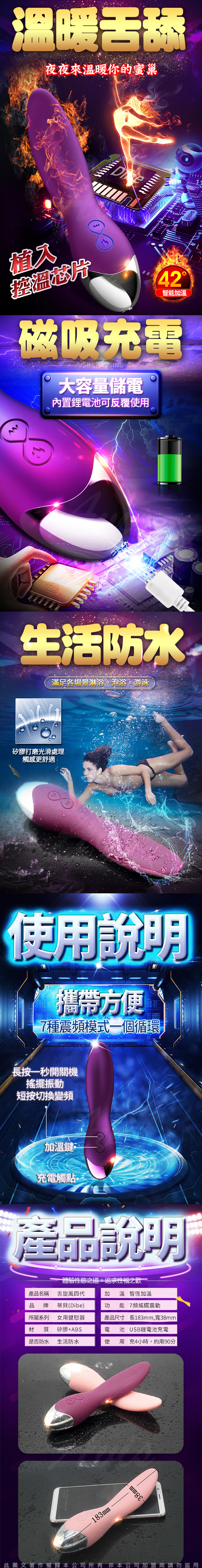 商品名稱:DIBE 舌旋風第4代 加溫仿真舌頭抽插振動按摩棒(充電款)