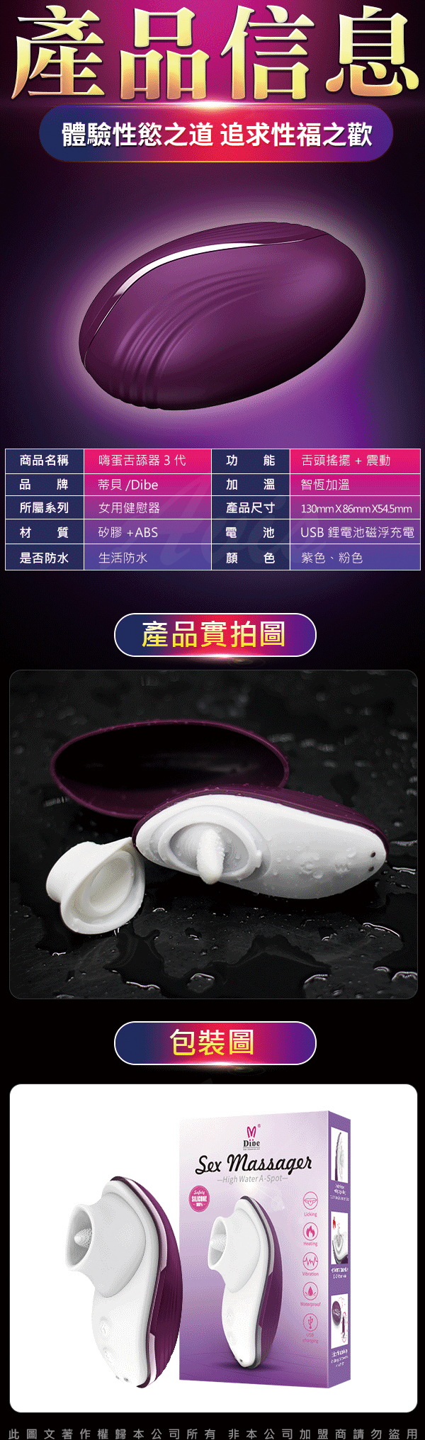 商品名稱:DIBE 嗨蛋3代 舌舔 情趣震動按摩跳蛋