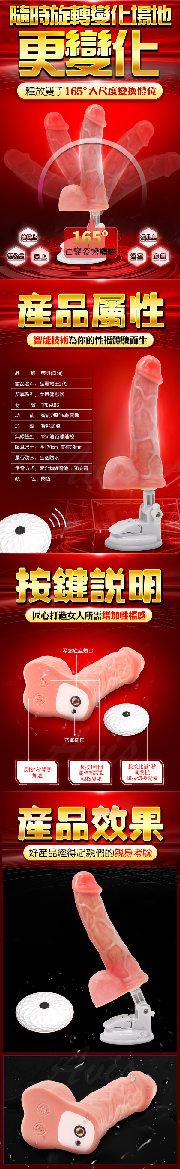 .主商品:Dibe-猛震戰士2代 智能恆溫 吸盤仿真陽具 變頻遙控老二強震棒-膚色