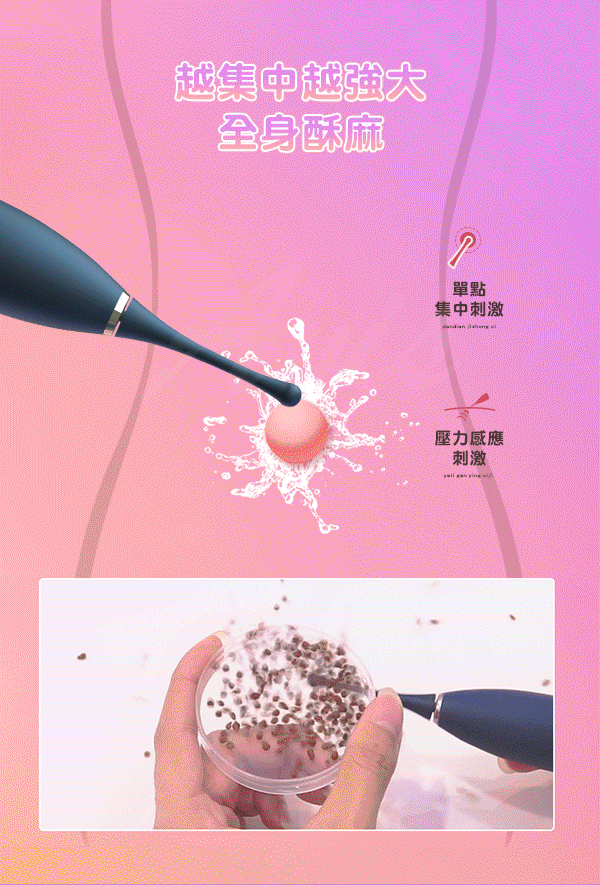 聚焦設計和強力震波,能給女性深層次的精密刺激,直擊女性蜜豆深處的神經
