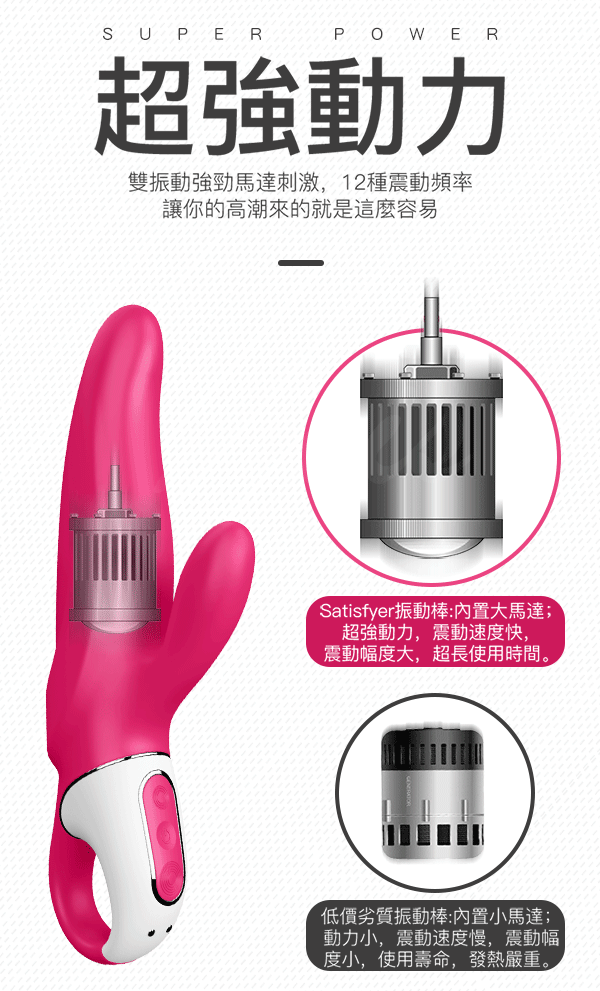 6種震動強度及6種震動節奏共輸出12種強勁的震動模式。超強馬力的的摩打將震動平均分布於機身,讓您由上至下,由內至外都能感受到強烈的快感!其 IPX7 等級專業防水技術讓您可以無拘無束地與 Yummy Sunshine 一起於水中嬉戲,盡享感官刺激。