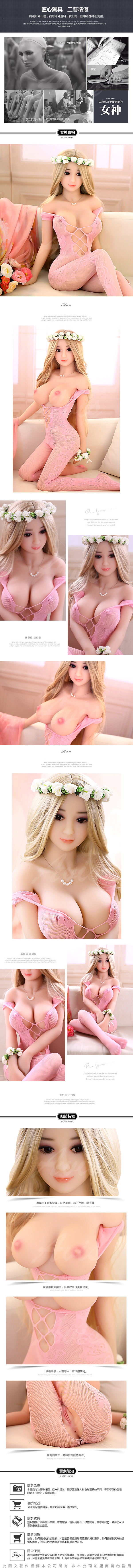【材料】外皮(皮膚)為高級無毒超軟TPE,內有金屬骨架,四肢的活動範圍與真人類似。