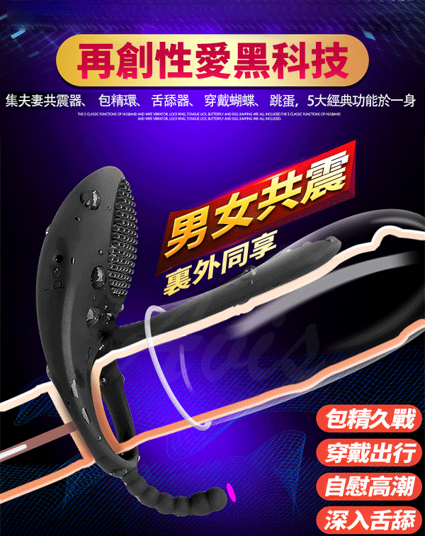 夫妻共震器、包莖環、舌舔器、穿戴蝴蝶、跳蛋,5大經典功能於一身