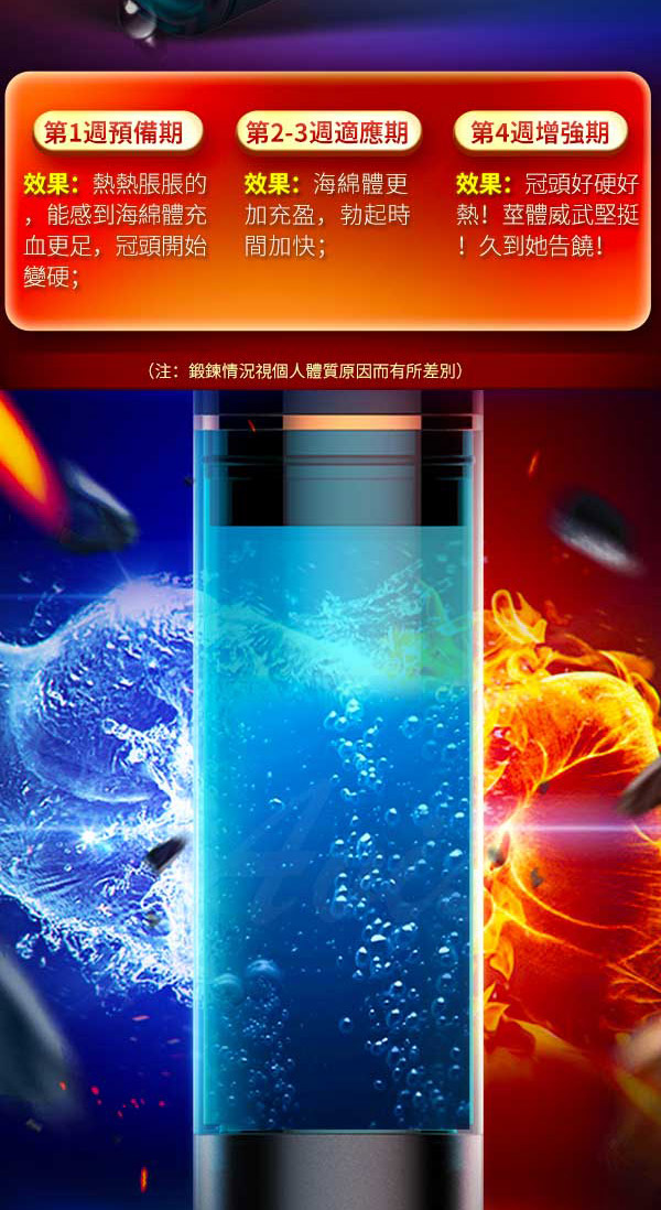 鵬搏根浴杯透過人體肌肉可通過鍛煉來強化,將物裡水浴法運用到莖體上達到鍛煉強化作用。