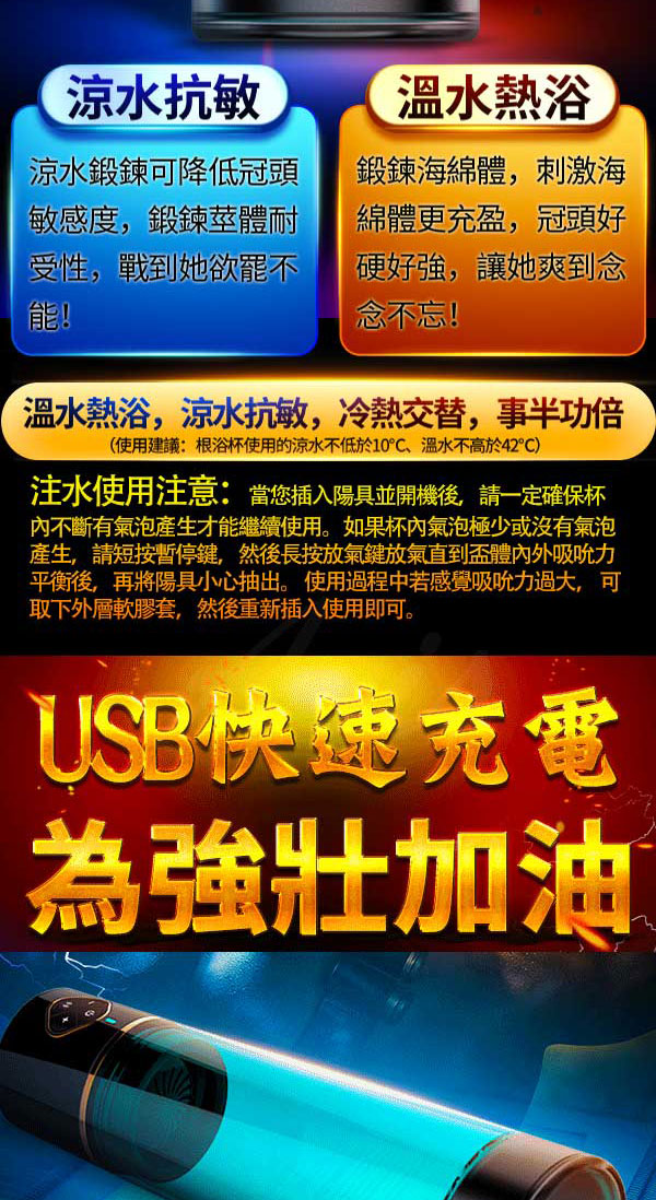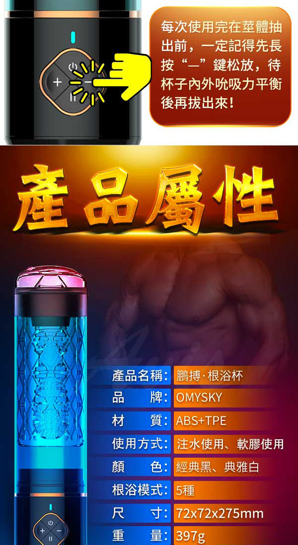.商品名稱:Omysky 鵬搏 3檔吸氣USB磁吸充電男用根浴杯 專屬膠條