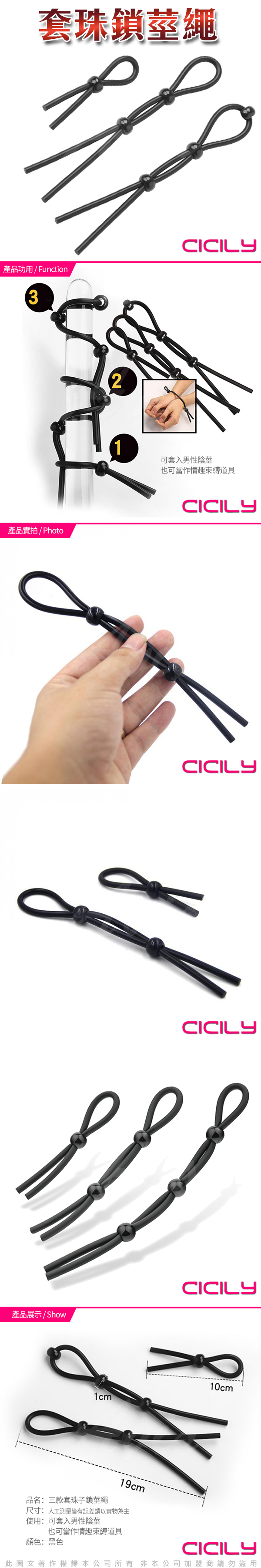 .商品內容:CICILY SM 三珠 矽膠鎖精繩