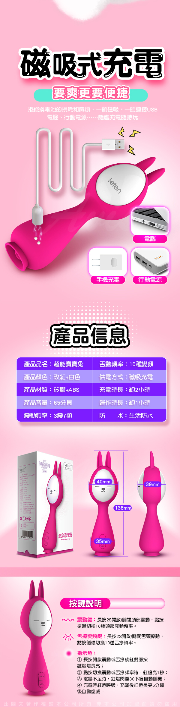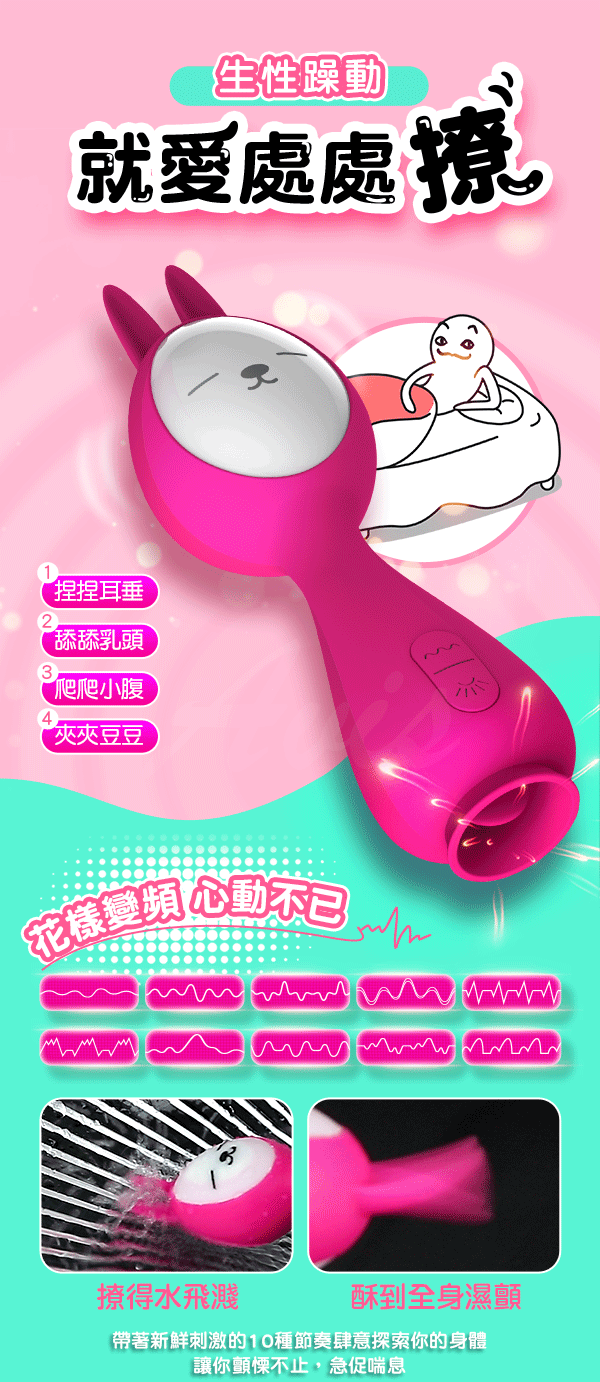 品名:Leten-超能寶寶兔 10震10舔 吸舔撩動跳蛋 按摩棒