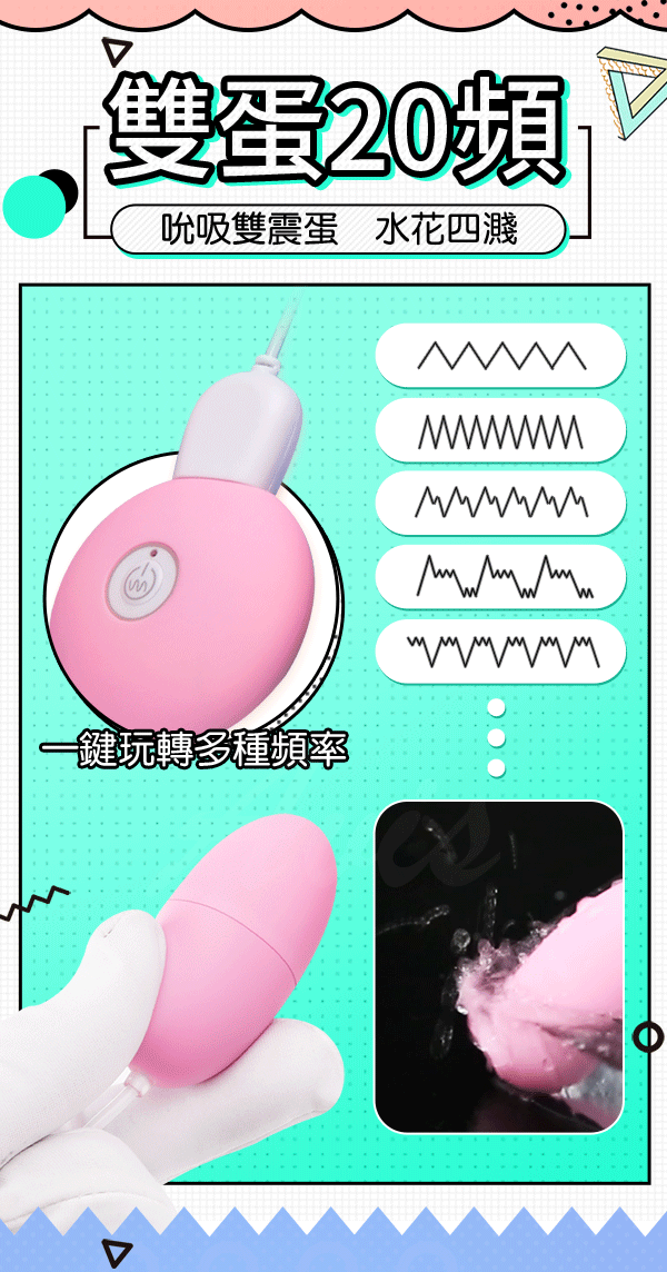 品名:覓心 20段變頻 脈衝口愛吸吮 USB雙跳蛋(遙控款)