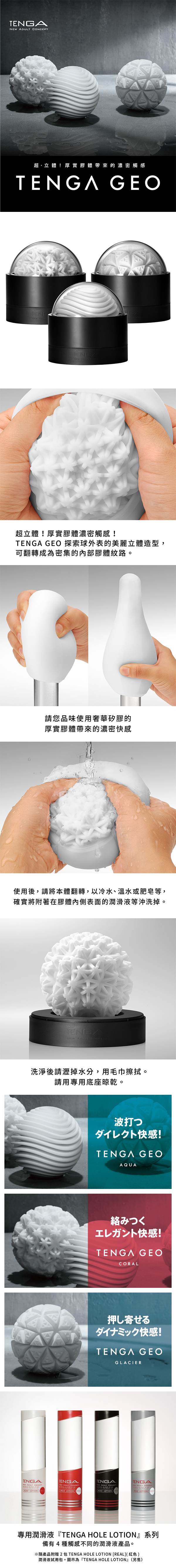 型號:GEO-001 (AQUA/水紋球) / GEO-002(CORAL/珊瑚球) / GEO-003(GLACIER/冰河球)本體尺寸:長87×寬87×高86(mm/公釐)包裝尺寸:長108×寬108×高106(mm/公釐)產品本體重量:約200g產品內容:產品本體、外蓋、底盤、固定零件、支架、潤滑液試用包(1包)材質:合成橡膠、ABS樹脂、聚碳酸酯備註:可以重複使用、附贈潤滑液試用包(1包)