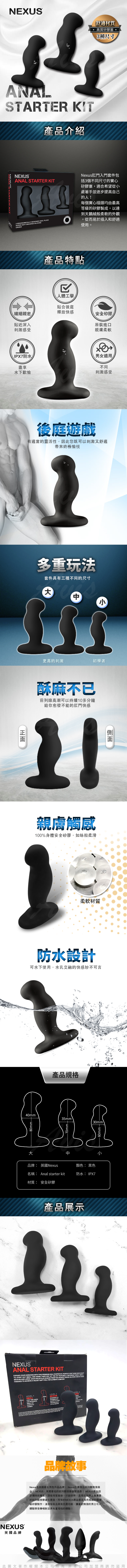 .商品內容:英國NEXUS ANAL STARTER KIT 入門款矽膠肛塞訓練組