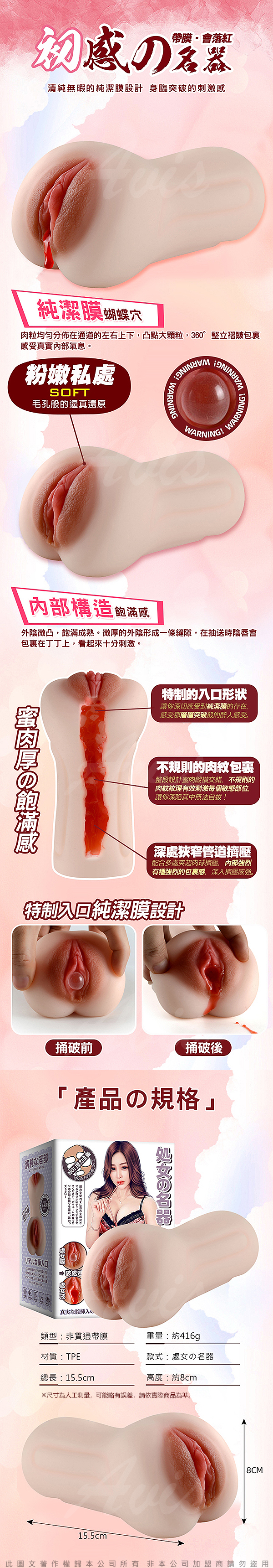 .商品名稱:處女の名器 初夜落紅緊致包裹自慰器-非貫通
