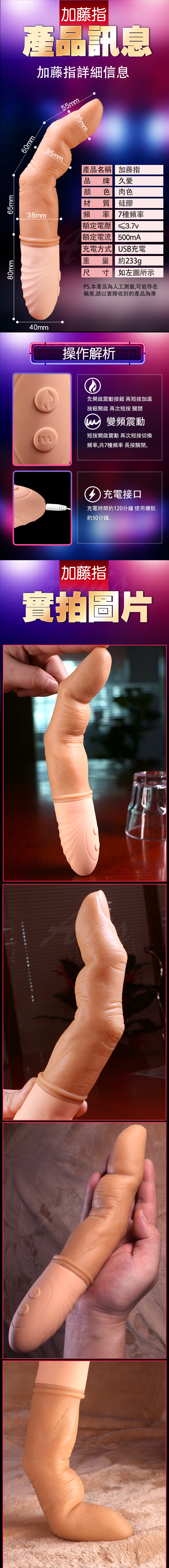 .主商品:加藤指 5段變頻摳動肉感大手指智能加溫矽膠充電按摩棒
