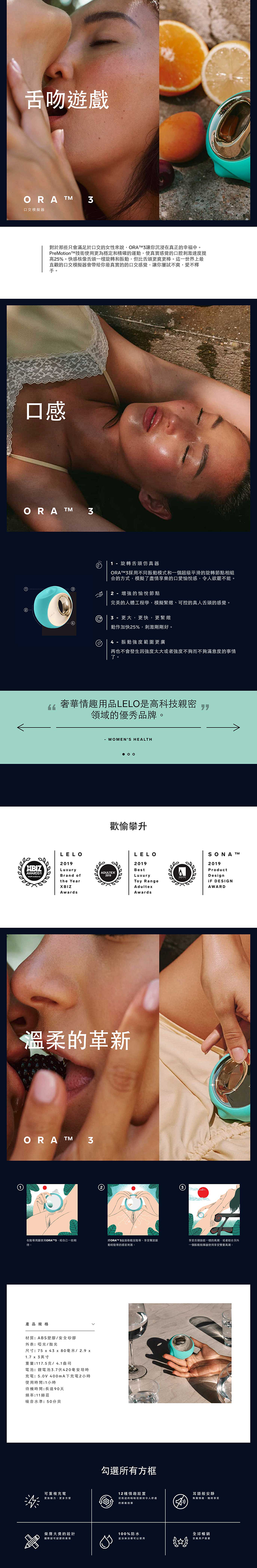 ORA™3採用不同振動模式和一個超級平滑的旋轉節點相組合的方式,模擬了盡情享樂的口愛愉悅感,令人欲罷不能。