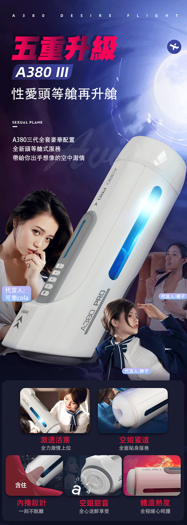 .主商品:Leten-A380 3代 氣旋伸縮 叫床 一鍵加溫/爆發 全自動活塞自慰杯