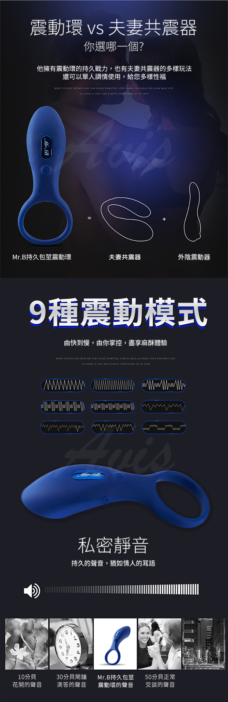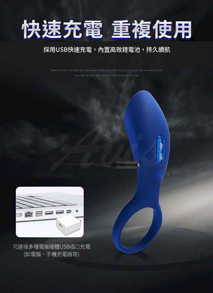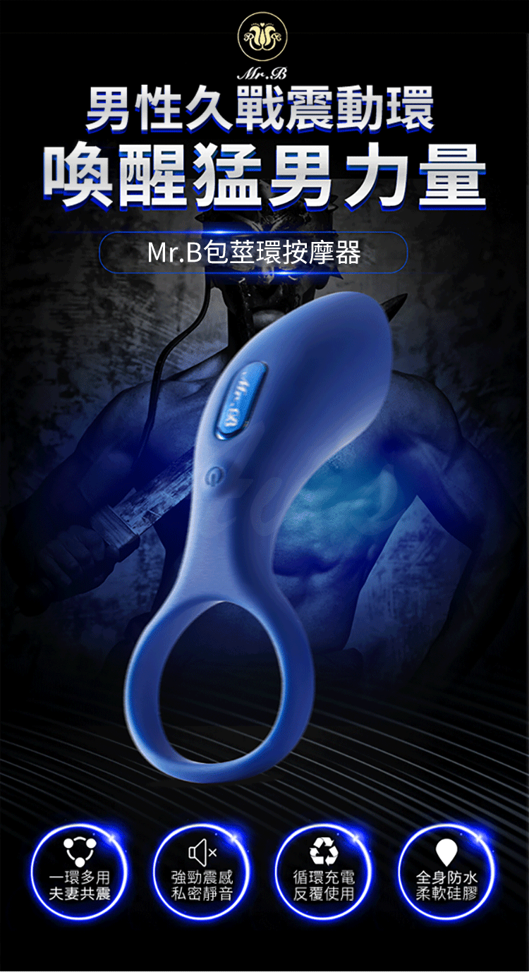 .主商品:Mr.B-B9大漢猛男互震8頻震動套環-藍