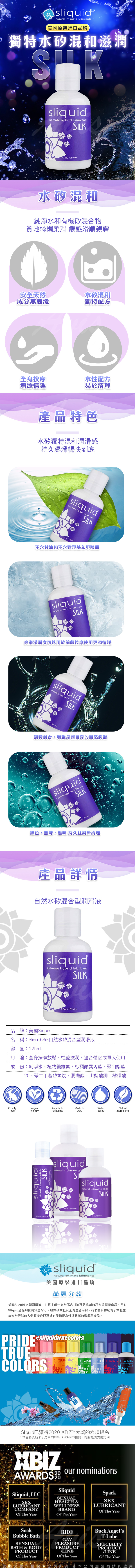 .主商品:美國Sliquid Naturals Silk 絲綢 水矽混合自然潤滑液-125ml