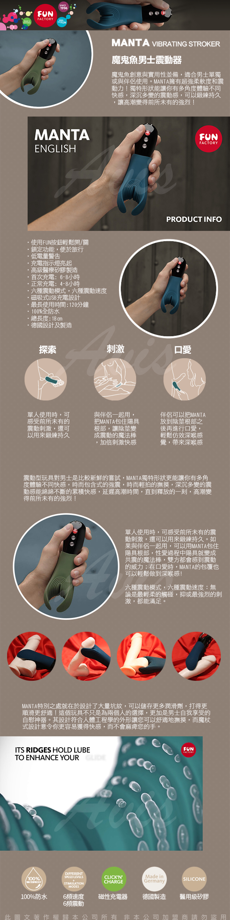.主商品:德國Fun Factory MANTA 魔鬼魚曼塔 男性陰莖專用按摩器