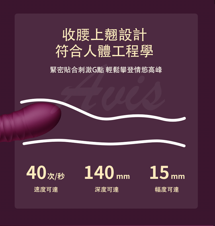 入體端部分使用水波浪曲線式設計,相互交錯的線條能增強摩擦快感與拉身長度。