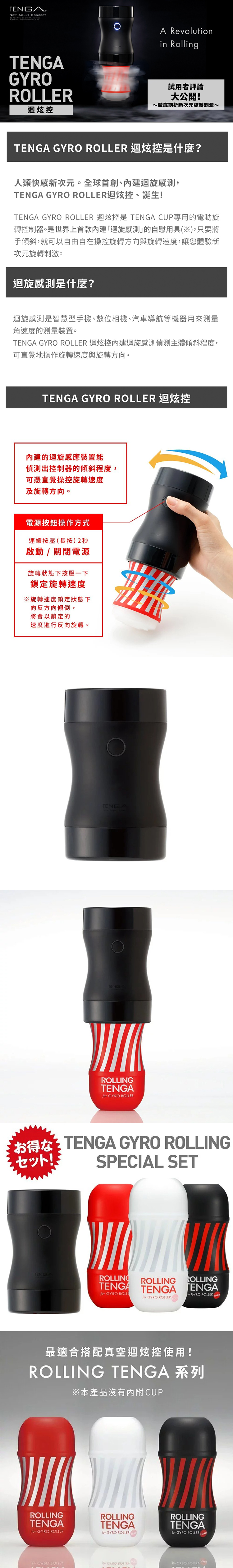 TENGA GYRO ROLLER迴炫控是TENGA CUP專用的電動旋轉控制器世界上首款內建迴旋感測的自慰用具