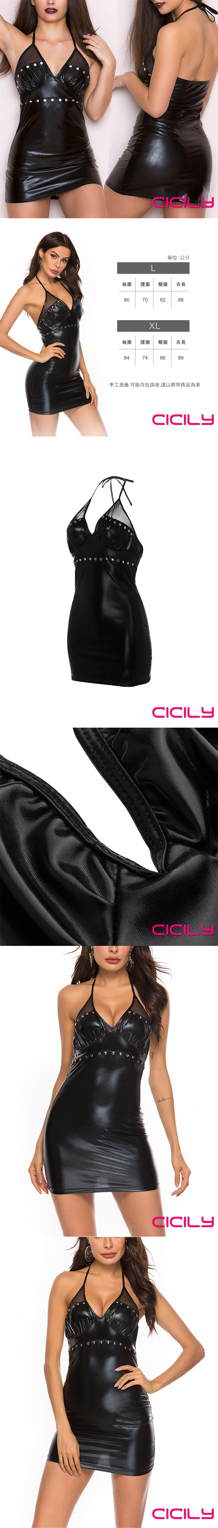 .主商品:CICILY 皮革鉚釘吊帶裙 漆皮膠衣 黑 L