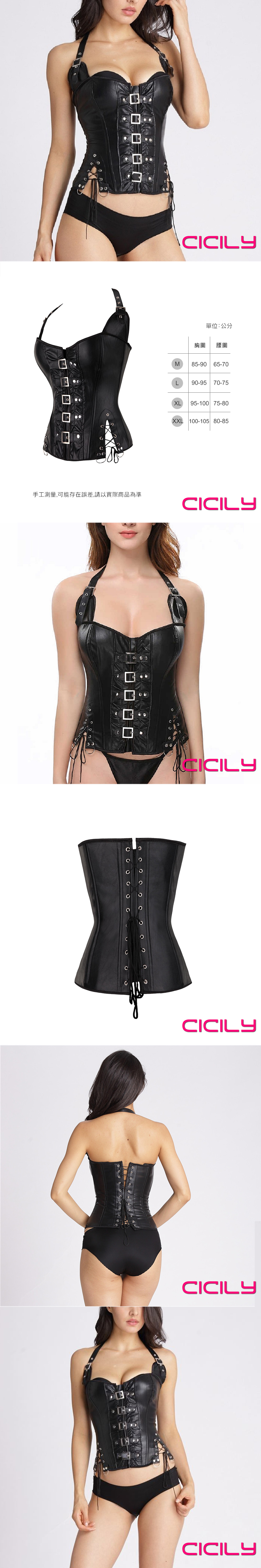.主商品:CICILY 女王的SM調教 掛脖束腰緊身衣漆皮膠衣 黑 XXL