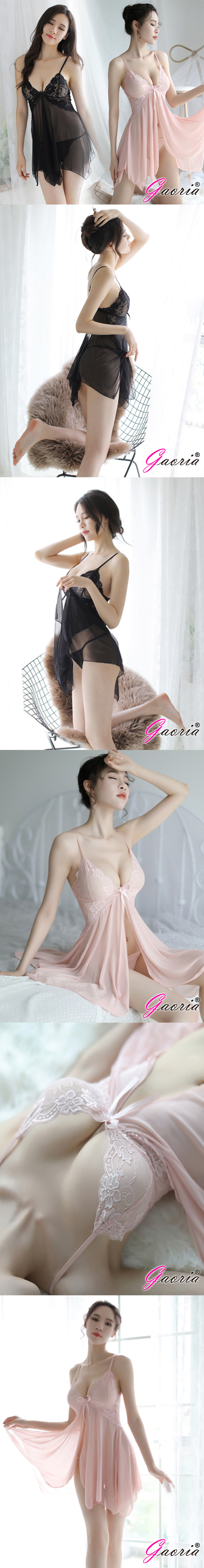 【Gaoria】嬌羞甜心 吊帶裙蕾絲情趣睡衣-黑