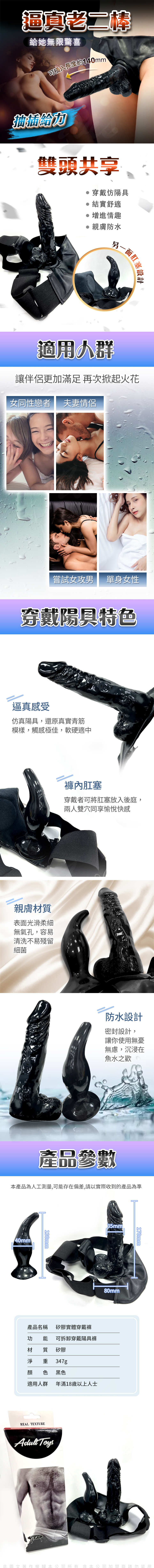 產品名稱:雙棒一起 穿戴老二+肛塞 可拆卸穿戴陽具褲(黑)