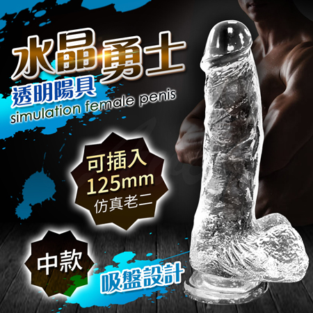 水晶勇士 仿真陽具老二按摩棒-透明-中款