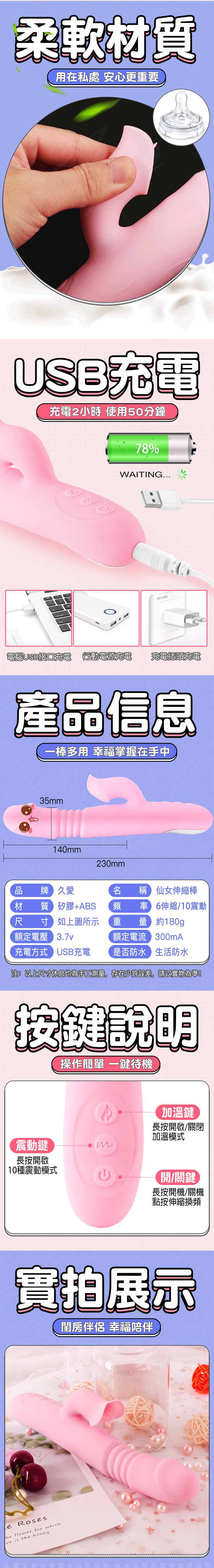 名稱:久愛-仙女 伸縮加溫舌舔搖擺電動按摩棒