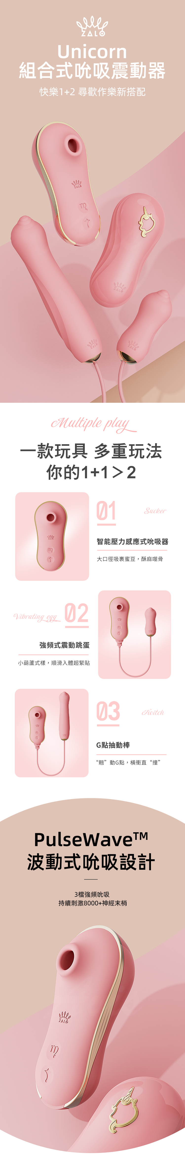 產品名稱:Unicorn Set 組合式吸吮抽插按摩器