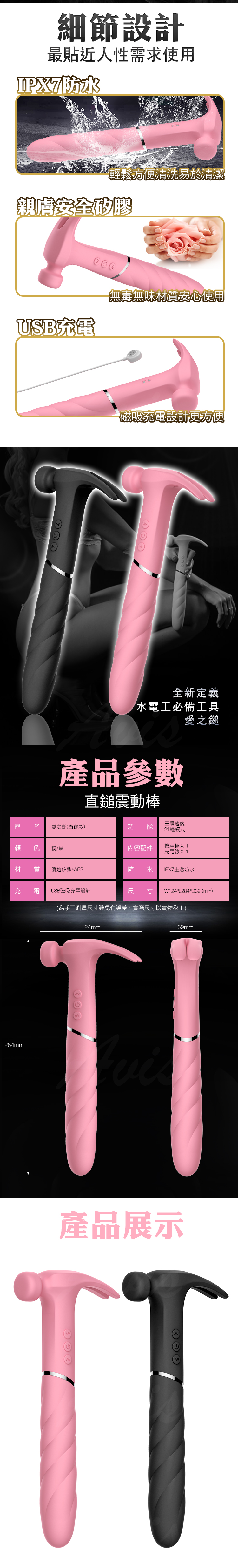 品名:做工的人 鎚子造型 敲彈 夾逗 插震 按摩棒