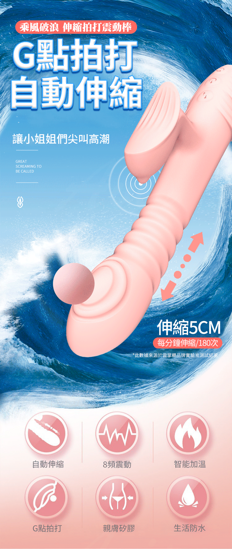 產品名稱:乘風破浪 8頻伸縮+拍打 加溫按摩棒