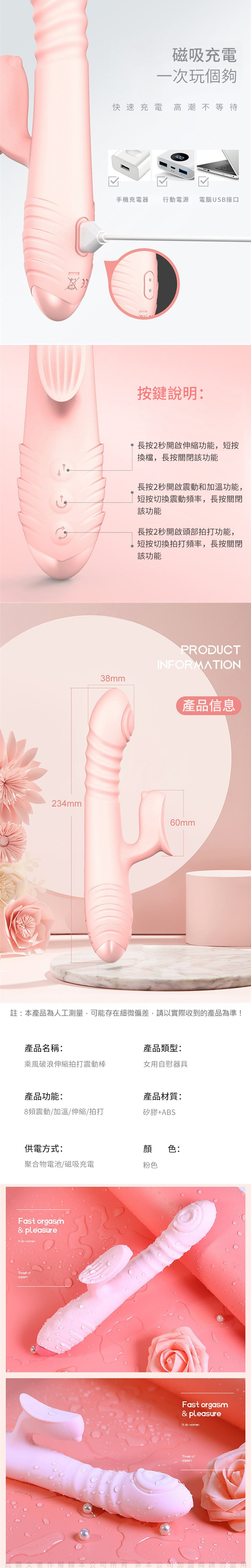 產品功能:8頻震動/加溫/伸縮/拍打