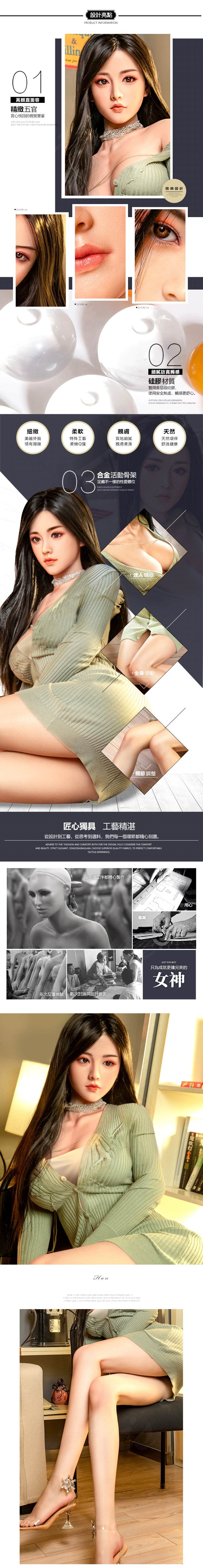 特色說明超擬真165cm真人矽膠娃娃3S級仿真皮膚塗層全面升級果凍胸,給你柔軟的舒適感受免費升級可站立款,解鎖多樣姿勢