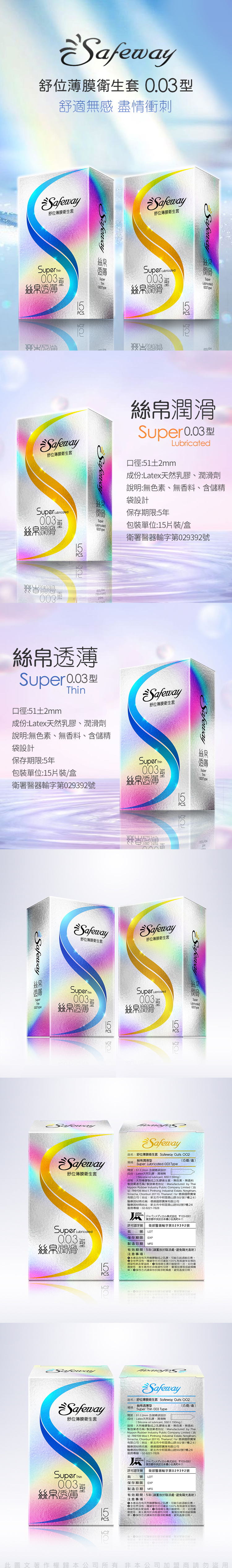Safeway舒位|薄膜衛生套|絲帛潤滑0.03 保險套 15入裝