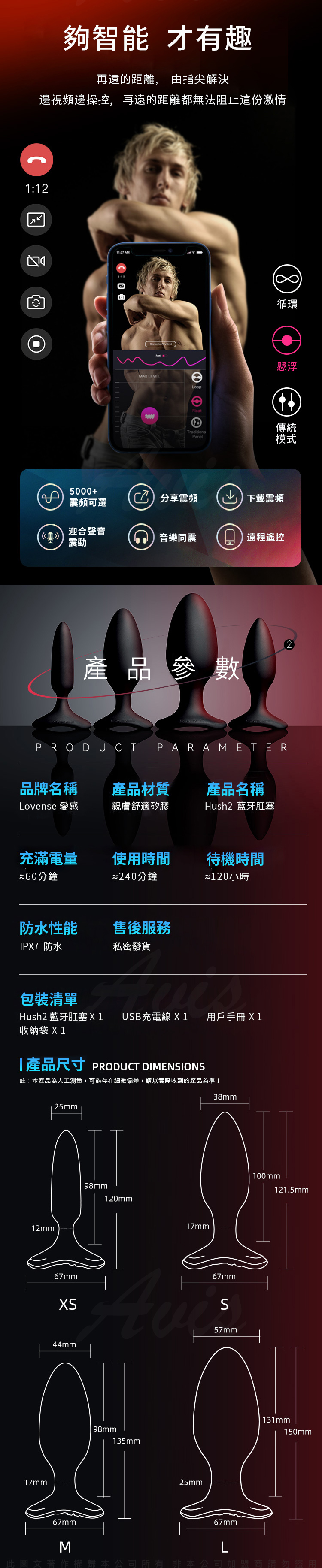 品名:Lovense Hush 2 M號|智能手機遙控後庭肛塞