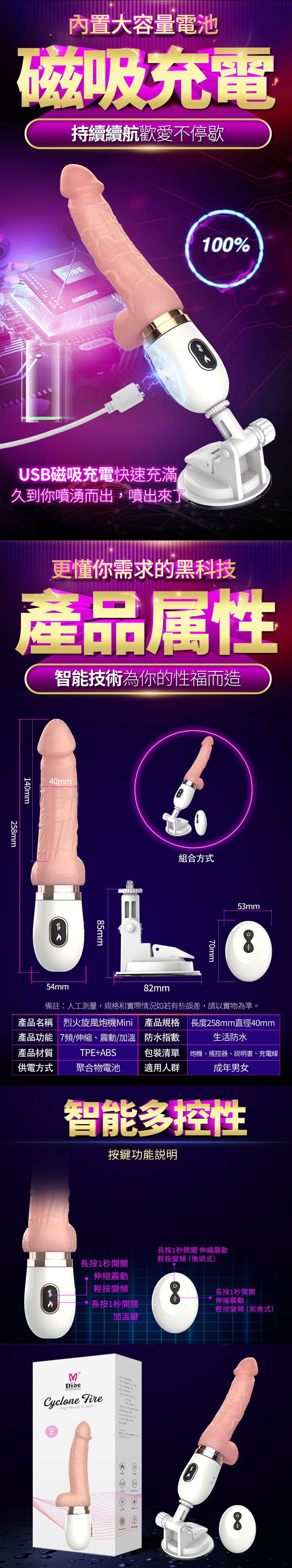 Dibe|烈火旋風Mini款伸縮炮機|無線遙控加溫震動炮機