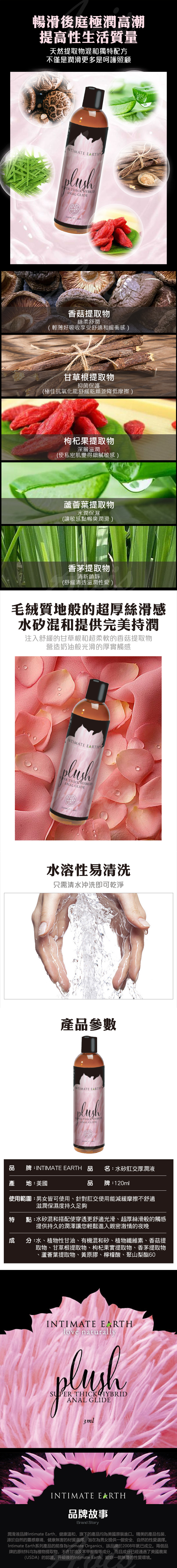 品名:Intimate Earth |Plush|水矽混合濃厚肛交潤滑液 120ml