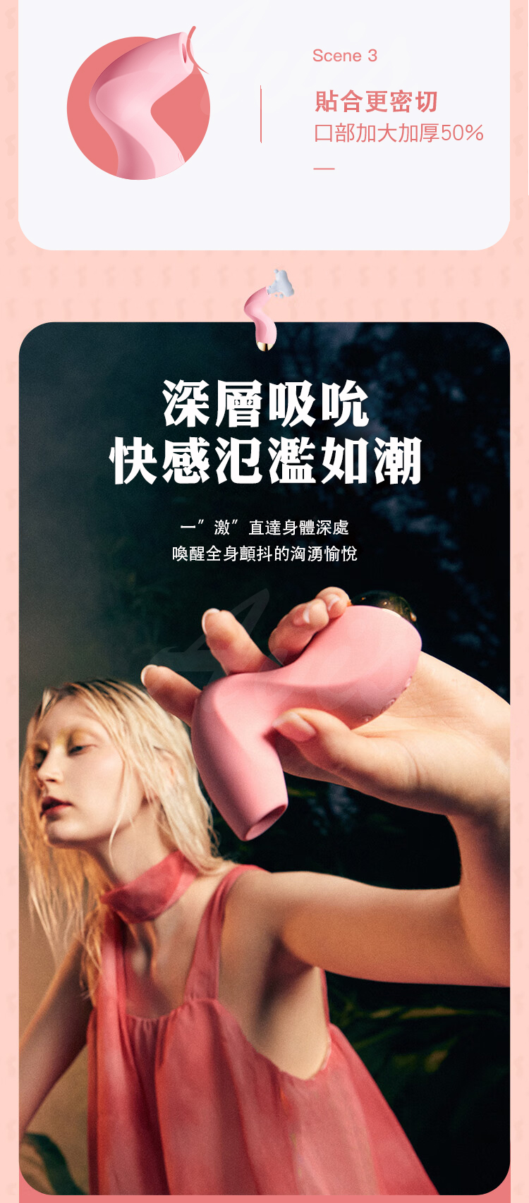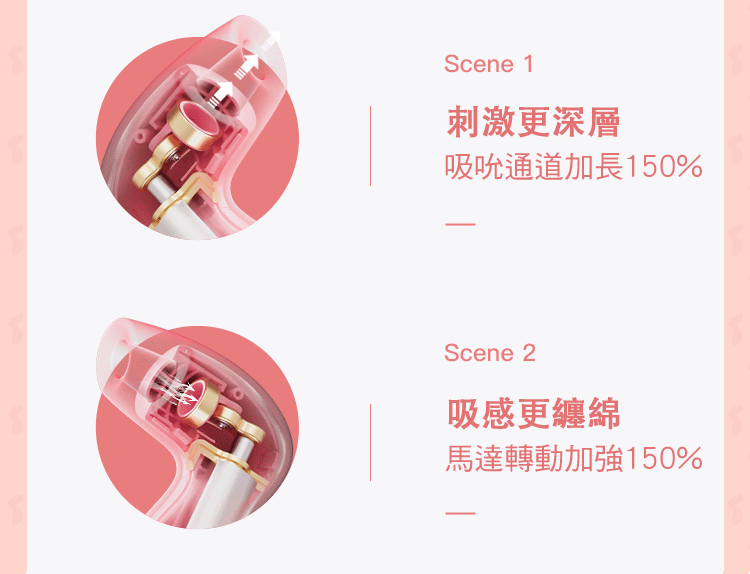 利用空氣為陰蒂帶來深層吸吮效果,刺激陰蒂和附近敏感帶;同時喚醒深層神經,引起最深沉的喊聲。
