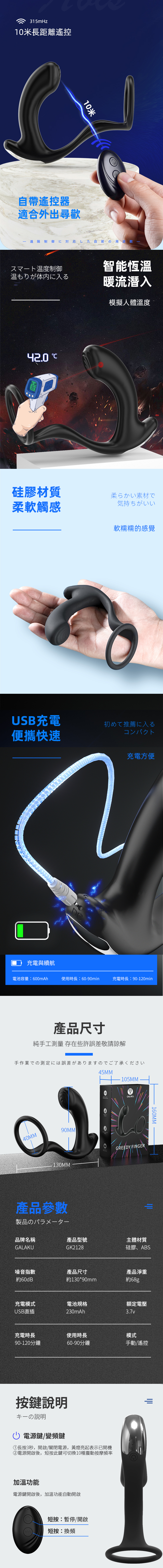 品牌名稱:GALAKU|后庭戰士 遙控加溫版|前列腺按摩器