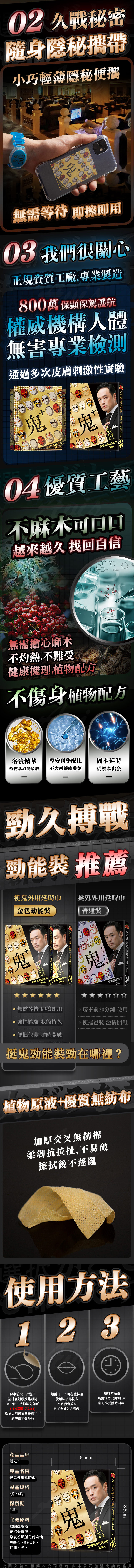 產品名稱:挺鬼|男用活力保養 外用延時巾|6入 全新金裝產品規格:6片保質期:2年主要原料:瑪咖提取液花椒提取波、聚須乙氫化蓖麻油無纺布、純化水、甘油、等。※本產品不能代替藥物!