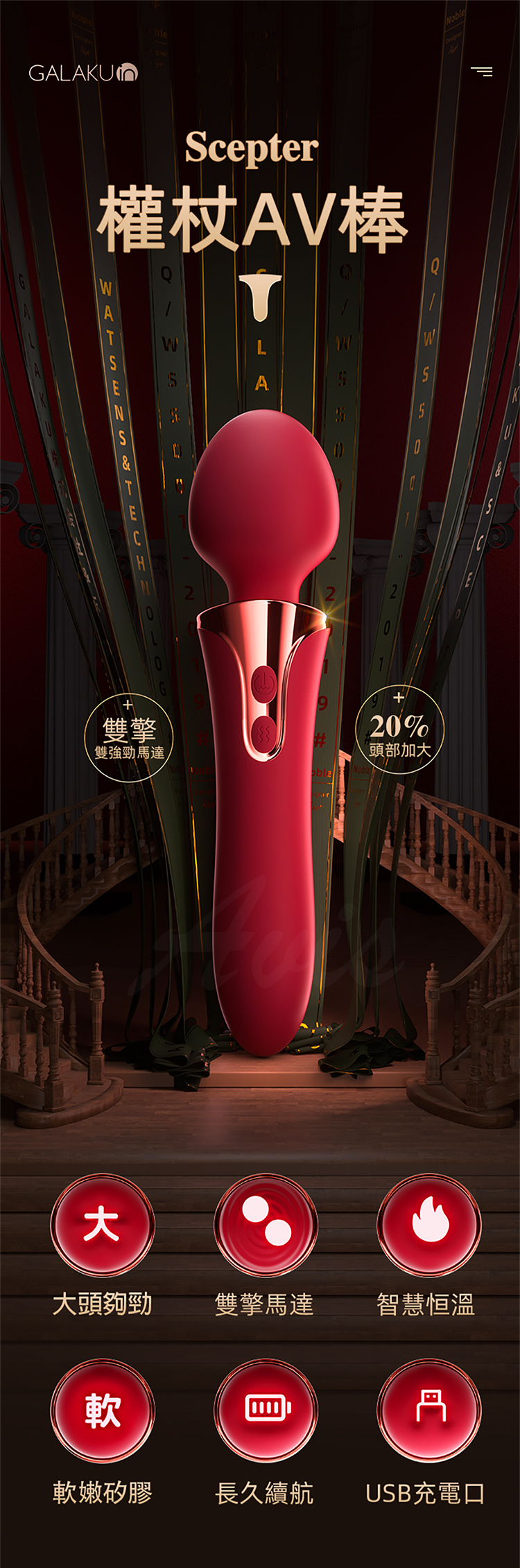 GALAKU|權杖|前震後插AV按摩棒 紅