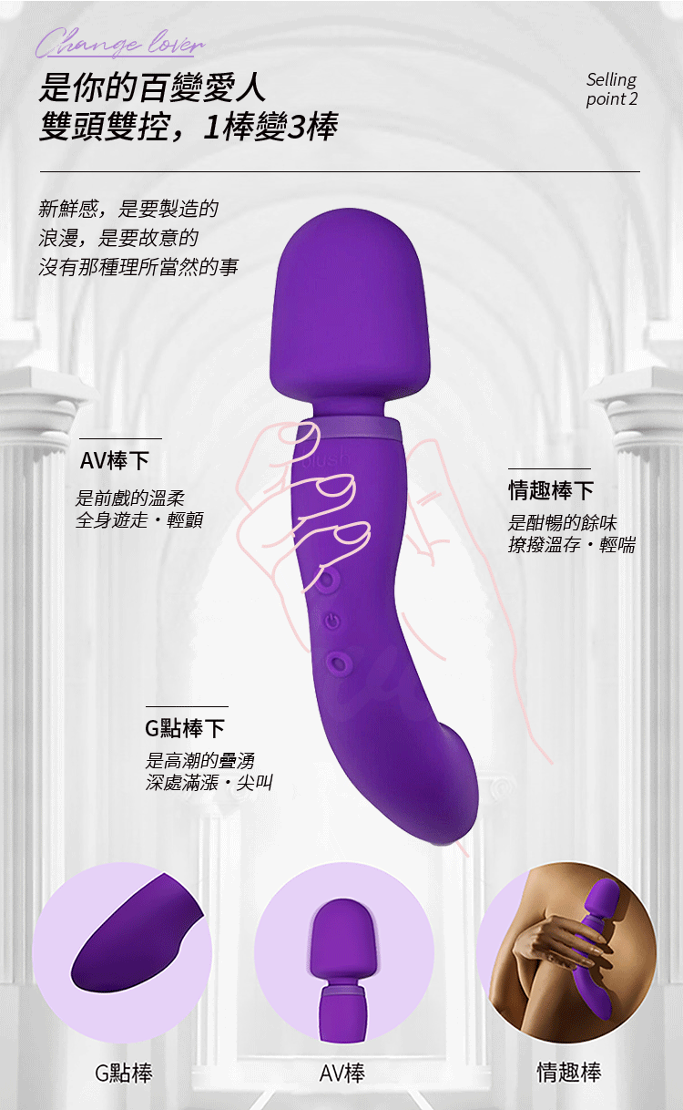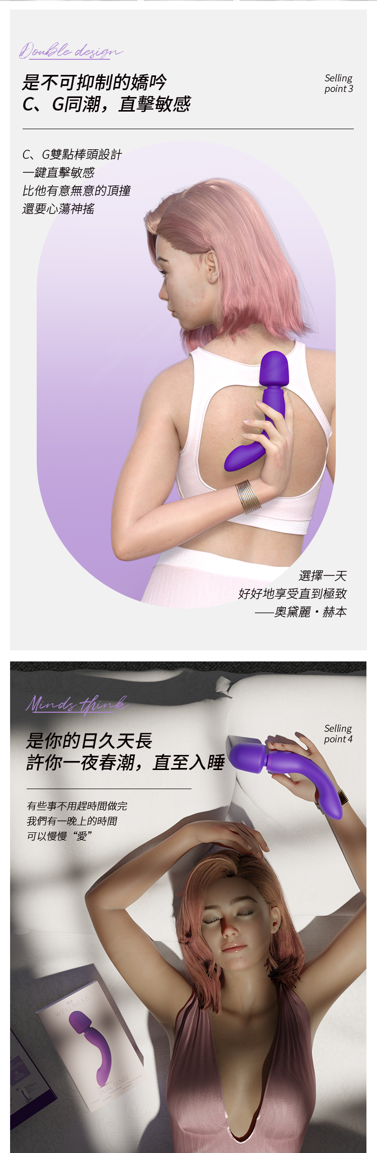 C、G同潮,直擊敏感。C、G點棒頭設計,一鍵直擊敏感,比他有意無意的頂撞更能心蕩神搖。採用鉑金固化矽膠材質。