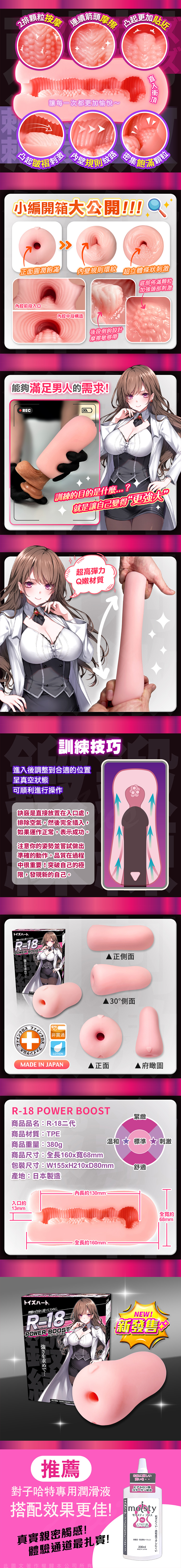 對子哈特再次突破自我,全新推出R-18 PowerBoost 二代,將「厚肉感」與「複雜管道設計」完美結合,滿足每一位追求極致快感的男性!