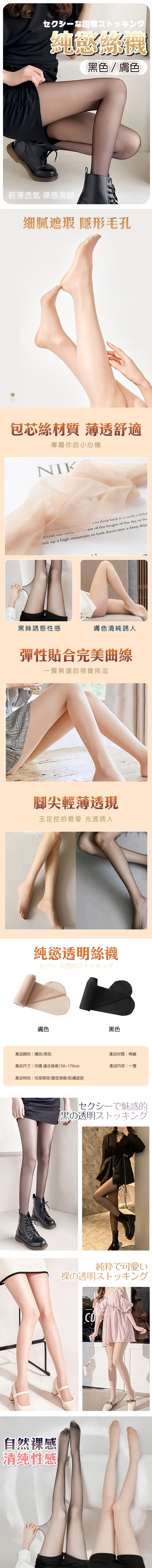 輕透誘惑,純淨性感的最佳詮釋!柔滑質感完美貼合肌膚,帶來隱約的性感曲線,演繹純欲之美。無論搭配日常或特別時刻,這款絲襪都能為你增添細膩的誘惑力,釋放自然魅力,讓每一眼都無法移開。