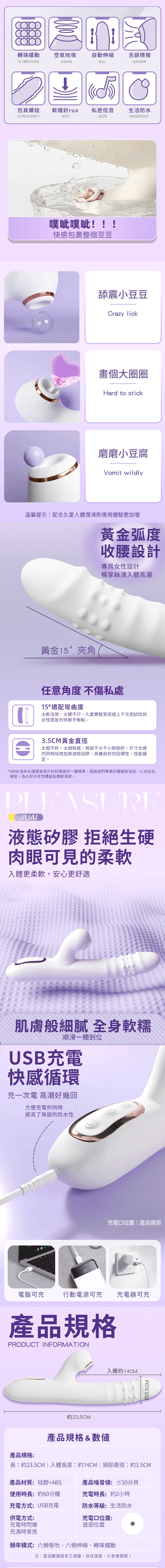 頻率模式:六頻吸吮、六頻伸縮、滾珠蠕動